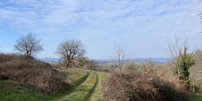 La déambulation entre Cordes et Saint-Martin-Laguépie est très plaisante, faite de belles perspectives sur les paysages du Causse, que nous quittons petit à petit pour rejoindre progressivement un paysage plus vert, les contreforts du Ségala tarnais. Etymologiquement, cela désigne une terre à seigle. A ne pas confondre avec le Ségala lotois, celui du Tarn se caractérise par son très dense réseau hydrographique et ses vallées sauvages et encaissées, ce qui lui vaut d'ailleurs le surnom de « pays des cents vallées ».