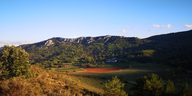 Après le village de Brenac, une montée de 150 m de dénivelé positif nous fait passer un col sous le Roc du Midi pour plonger ensuite en direction du village de Quillan, dynamique cité au pied des barres rocheuses et au bord de l'Aude.