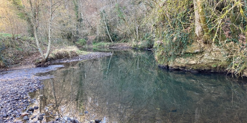 Depuis le plateau du village de Saint-Jean-de-Marcel, nous descendons gentiment dans la vallée du Cérou, qui nous propose une eau turquoise, où nous passerons à gué.