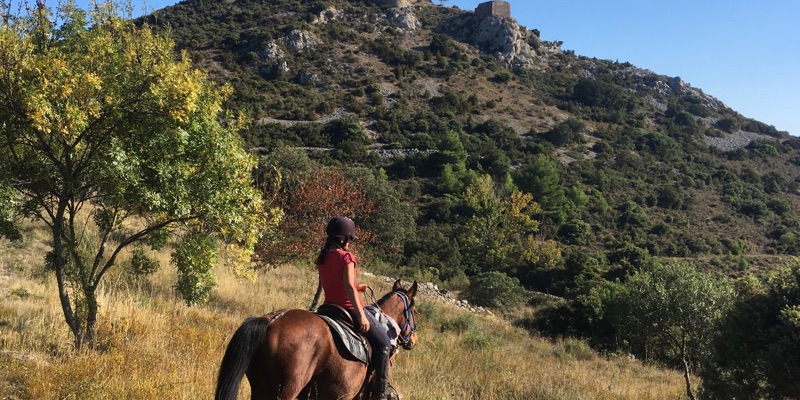 Après avoir traversé le village de Tuchan, joli village du massif des Corbières. La plaine que nous traversons nous permet d'admirer le château d'Aguilar, tout en s'approchant du piton rocheux sur lequel il repose, à 296 m d'altitude.